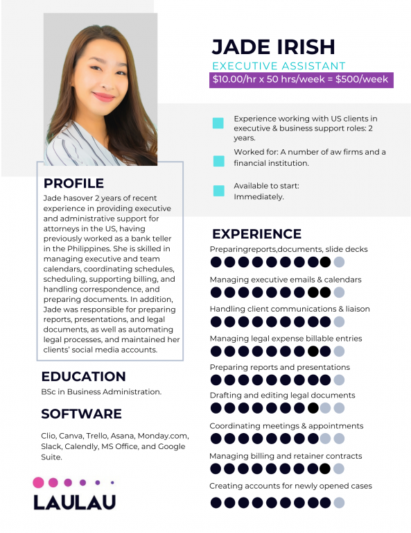 With over 15 years of experience helping professional service firms scale with elite remote talent, Anna has pioneered the approach that LauLau is known for today.
